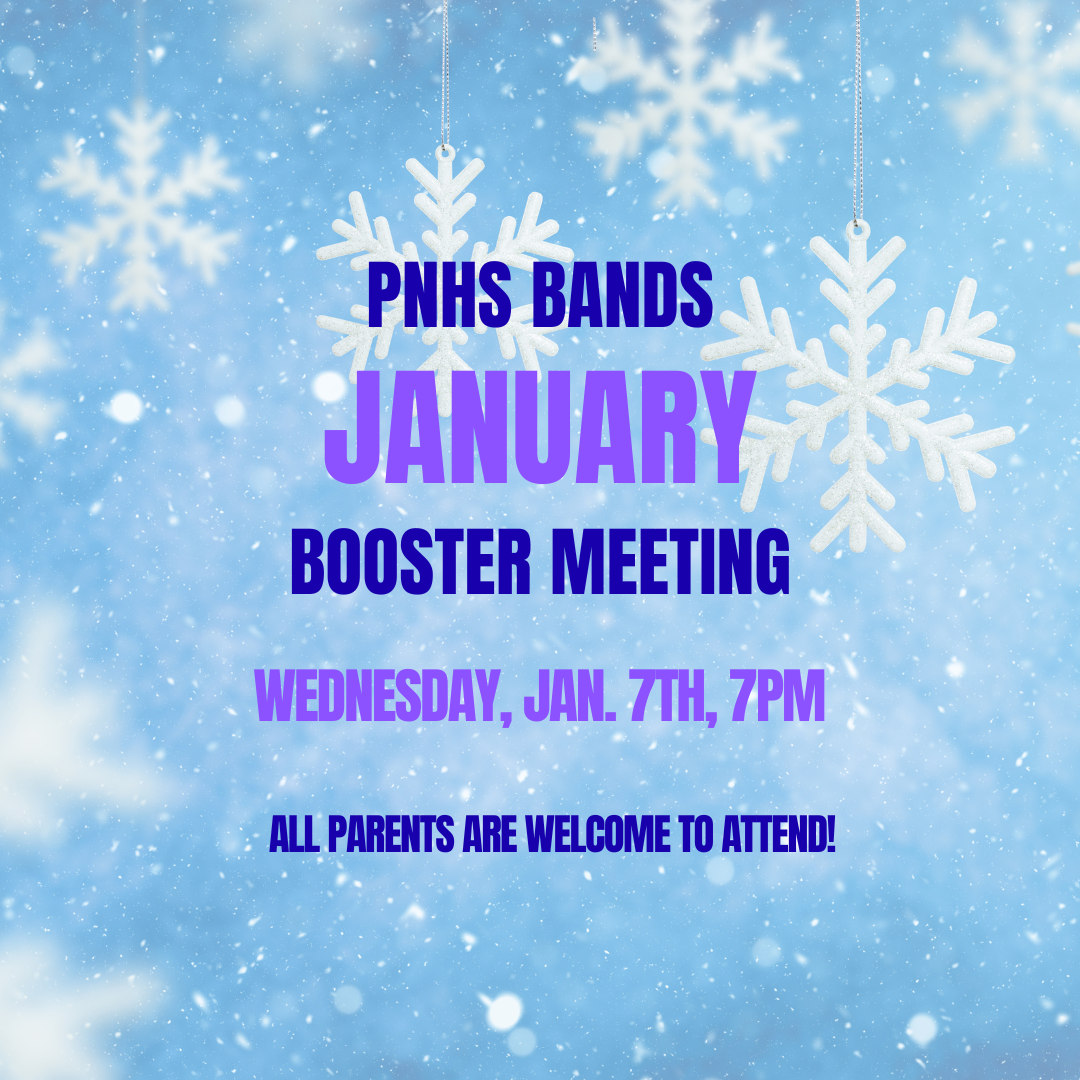 PARENTS: Join us for our monthly Booster Meeting on Wednesday, January 7th, at 7pm in the Band Room. Enter through Door P.