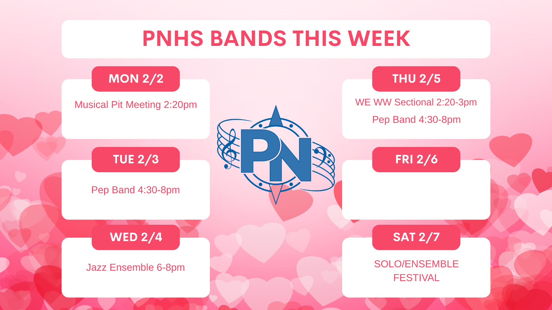 We are ONE MONTH away from our WINTER CONCERT. The concert is on THURSDAY, FEBRUARY 26th, at 7PM in the PNHS Auditorium. Here are some more details: