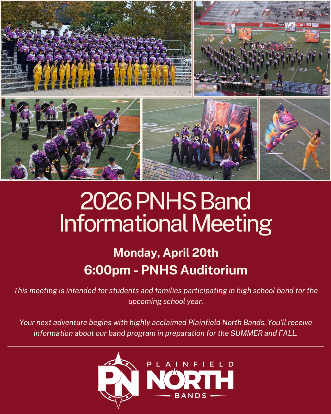 PARENTS: Join us for our monthly Booster Meeting on Wednesday, April 8th, at 7pm in the Band Room. Enter through Door P.