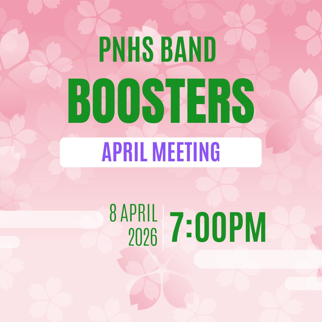 Our annual spring event, Treats and Beats (formerly known as Just Desserts) is quickly approaching - it will be held on Thursday, May 7 from 6:30 to 8:30. The Boosters Board is looking for volunteers to help coordinate the event, specifically a chair/co-chairs to organize the event, volunteers to help with the raffle baskets, and volunteers to help the day of the event. If you are interested in participating, please reach out to Katie Clark at katie.clark@pnhsbands.org. An informational meeting (virtual) will be held in the next week with more information.