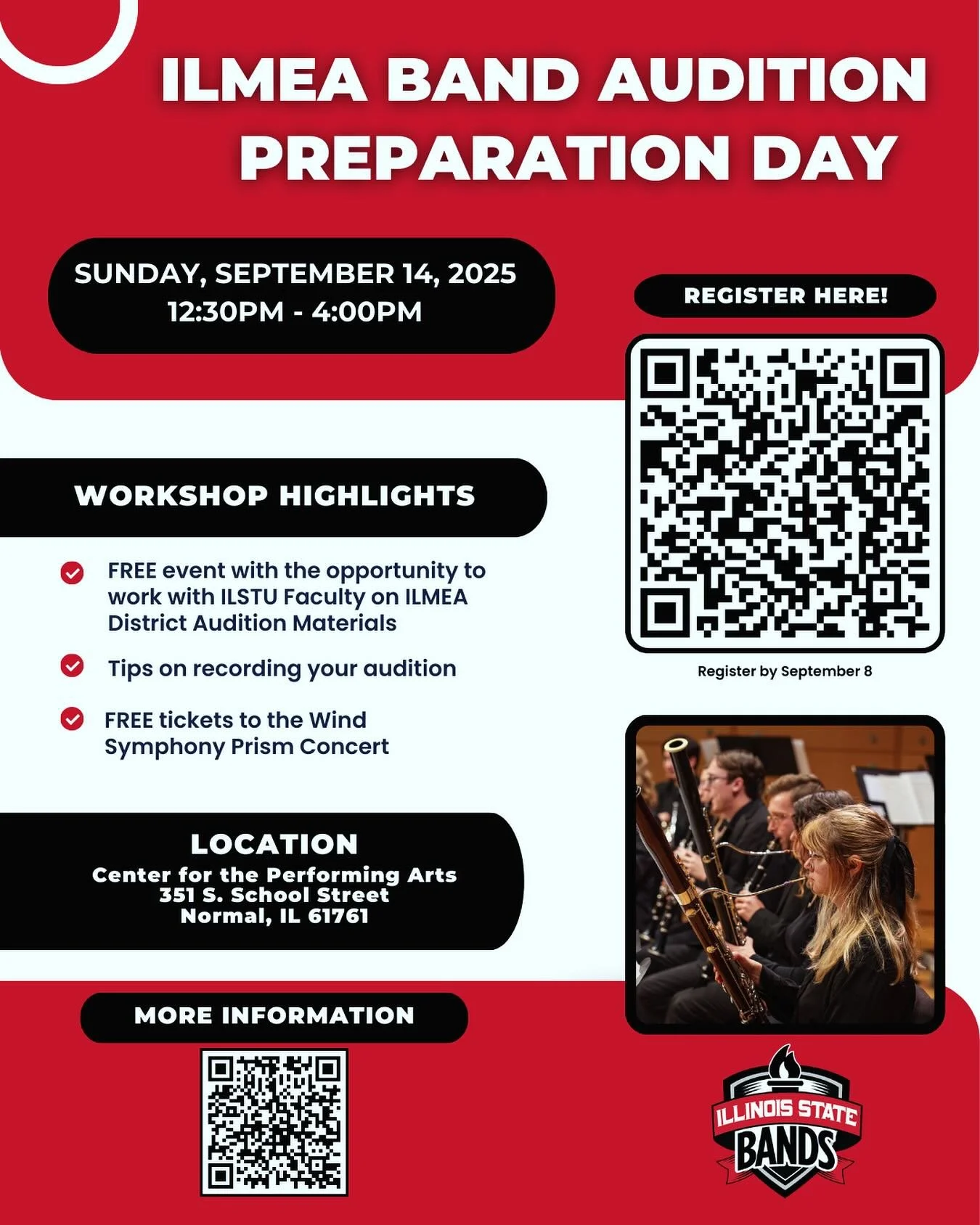 Absence Reporting: If a student will miss a full band rehearsal or performance for an excused absence, a parent or guardian must complete the Absence Report Form at the link below.